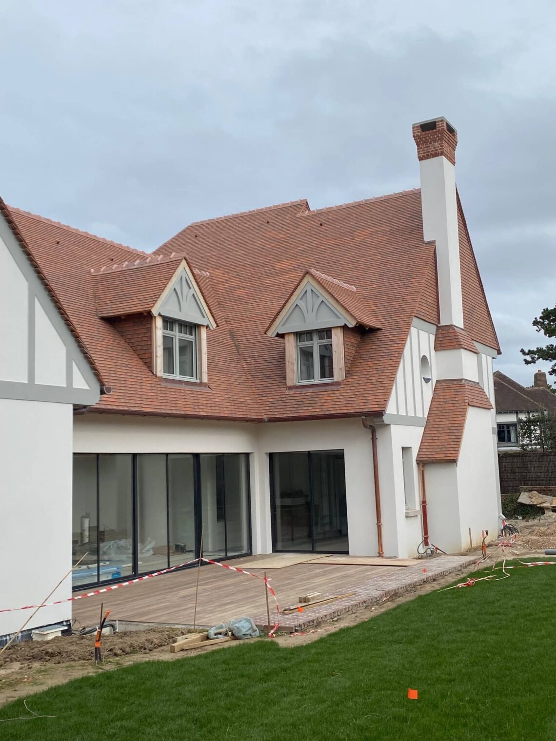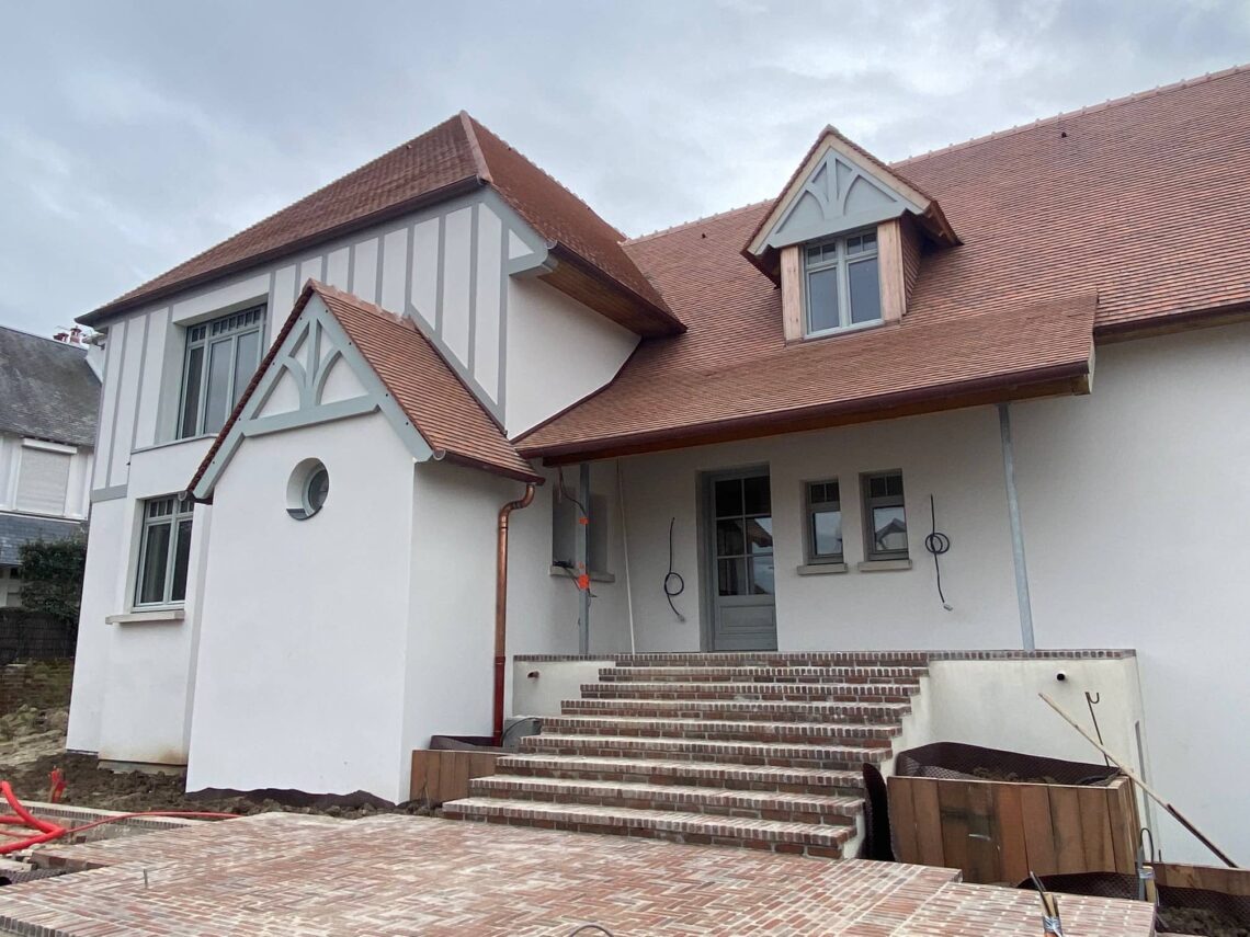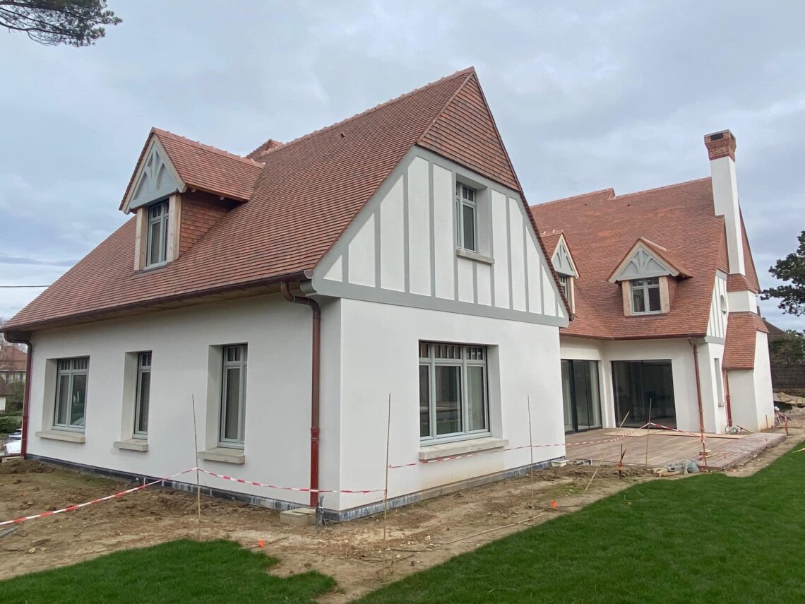 Sur ce superbe chantier d’enduit de façade au Touquet, nos équipes ont pu montrer tout leur savoir-faire. Un bel ensemble constitué d’une partie neuve et d’une partie en rénovation sur lesquelles ont été appliqués des enduits de marque VPI Monocal GF et Rénopass Chaux en taloché fin. Et parce que la Normandie n’est pas bien loin, nos façadiers ont réalisé des imitations de colombages à base d’enduit. Cette matière minérale permet en effet de réaliser des modénatures pour donner du caractère à vos façades. On peut ainsi laisser libre court à ses envies en réalisant des changements de couleur, des surépaisseurs, des joints creux ou autres imitations pierre.
