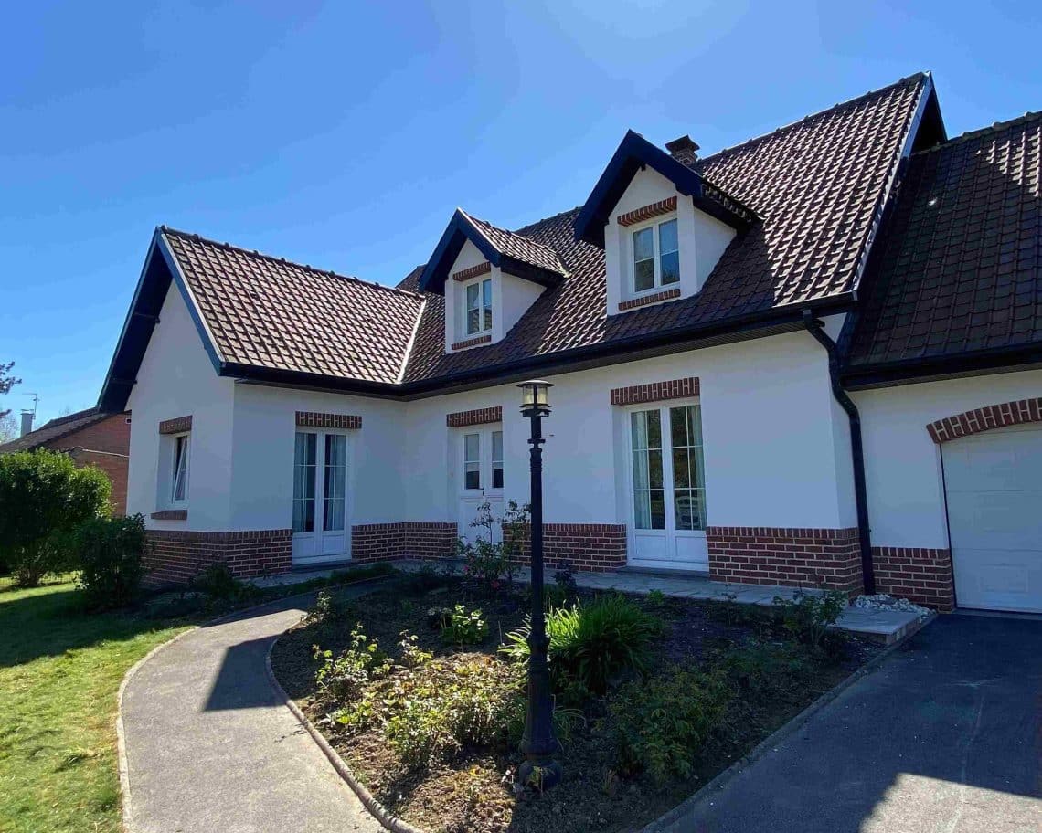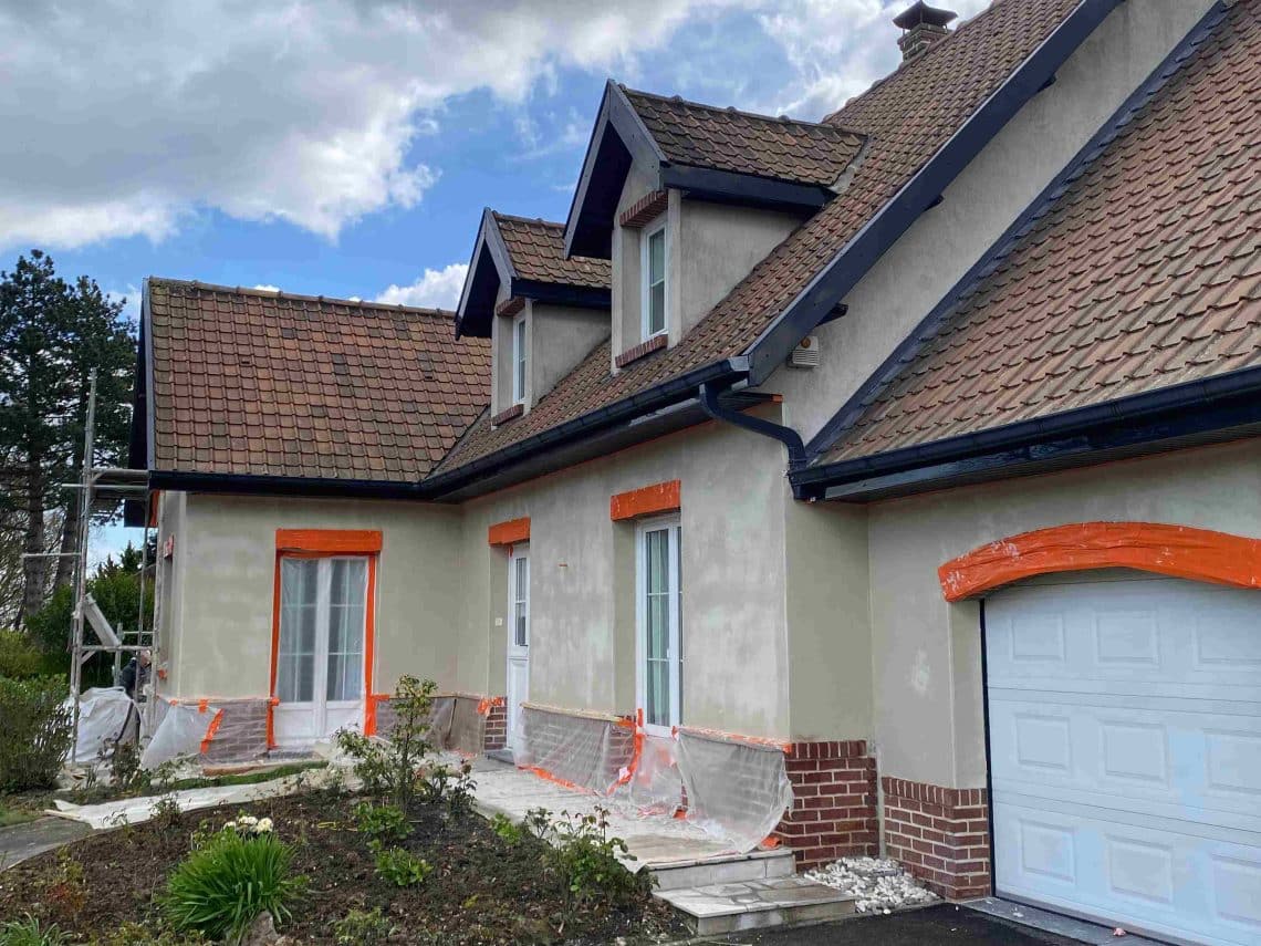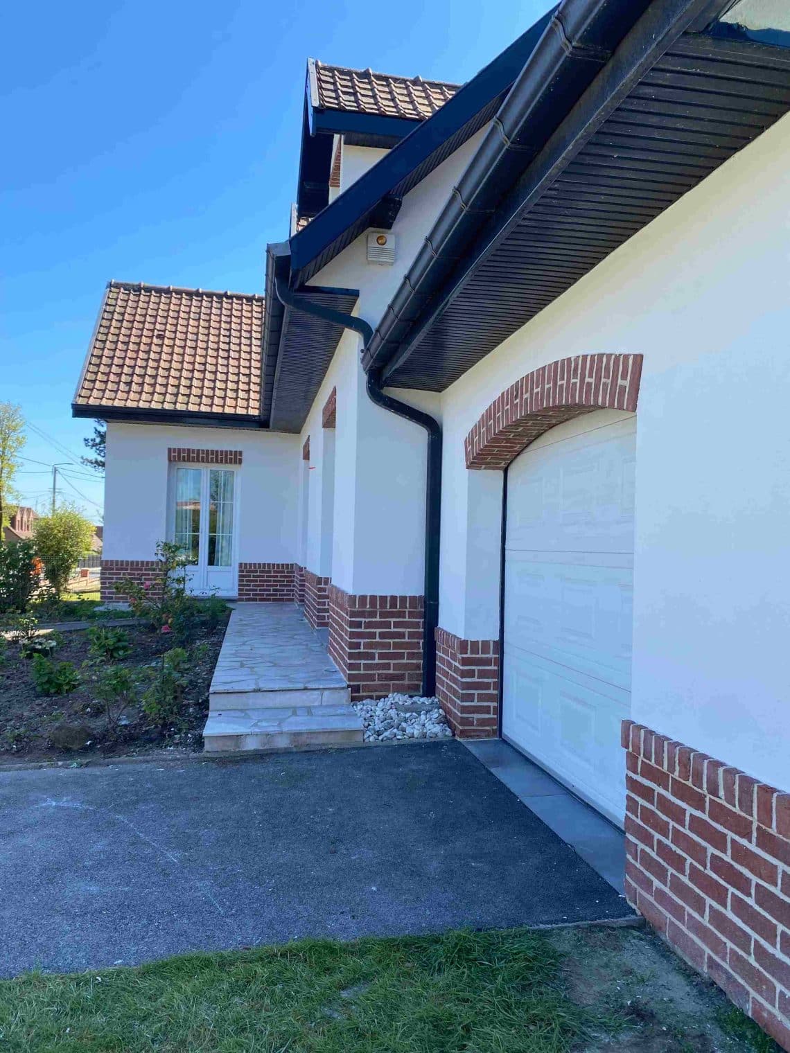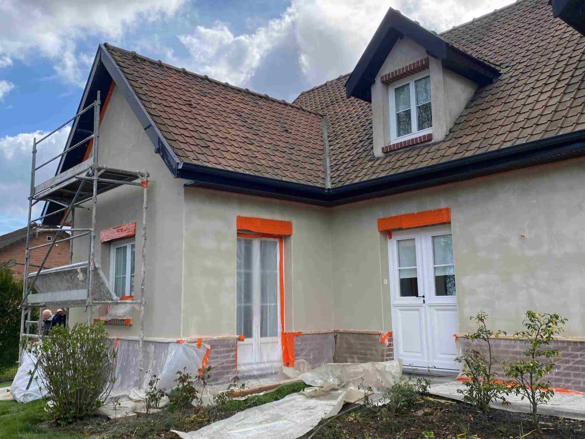 Au fil des années les intempéries agressent et détériorent vos façades. Cette dégradation esthétique altère également les capacités d’imperméabilité des matériaux. L’humidité rentre alors dans votre maison, générant des infiltrations et rendant l’air intérieur malsain. Un traitement de vos façades va pouvoir remédier à ces problèmes. Après une inspection méticuleuse de vos murs extérieurs, le façadier va pouvoir vous proposer une solution de rénovation efficace. Sur ce chantier à Hinges, le ravalement de façade a tout d’abord consisté en un ponçage du support avec un rebouchage des fissures. Par la suite nos façadiers sont venus mettre en place un sous-enduit tramé avant l’application d’un enduit de finition RME de chez PRB. Une solution protectrice, efficace et pérenne qui permet également de donner un coup de neuf à votre habitation.