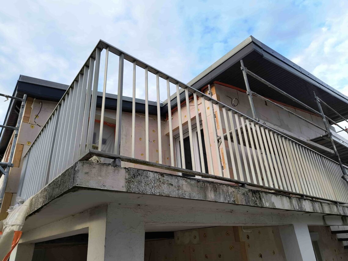 Sur cette isolation extérieure, nos équipes ont tout d’abord mis en œuvre un isolant de qualité. Thermiquement plus performant qu’un polystyrène expansé, les panneaux de mousse résolique installés permettent de diminuer sensiblement les épaisseurs. Ainsi, nos compagnons ont fixé ces panneaux par collage et chevillage en respectant un mode de pose en quinconce afin d’éviter toute fissuration ultérieure. Une fois l’isolant en place, nos façadiers ont marouflé une toile de fibre de verre dans un sous-enduit sur toute la surface. Cette opération vient donner de la rigidité au système isolant installé. La touche finale est alors mise en œuvre avec l’application d’un enduit de finition. L’isolation extérieure est un métier nécessitant un savoir-faire particulier et l’utilisation de matériaux éprouvés.